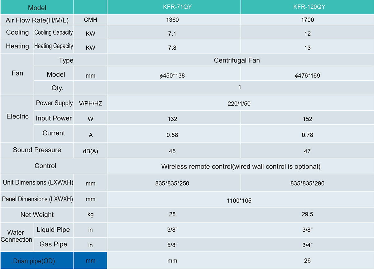 High efficiency circular coil are made of copper tubes and high exchange surface area aluminum blue fins. With built-in EEV, external EEV is optional.